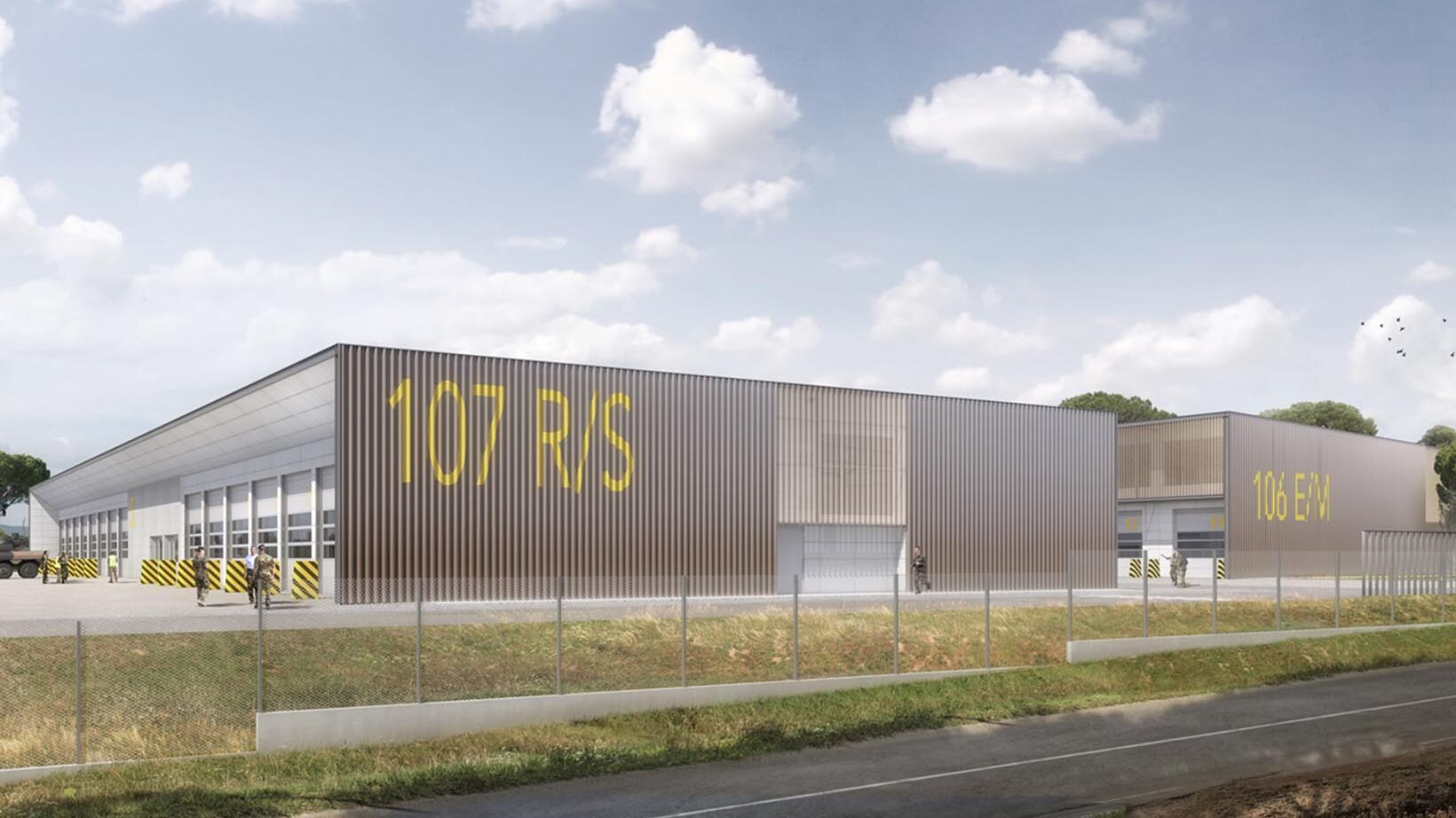 Bâtiment pour remisage de véhicules lourds types blindés, maintenance et entretien, locaux d’entraînement et simulation, mise aux normes installations existantes et travaux de voirie.