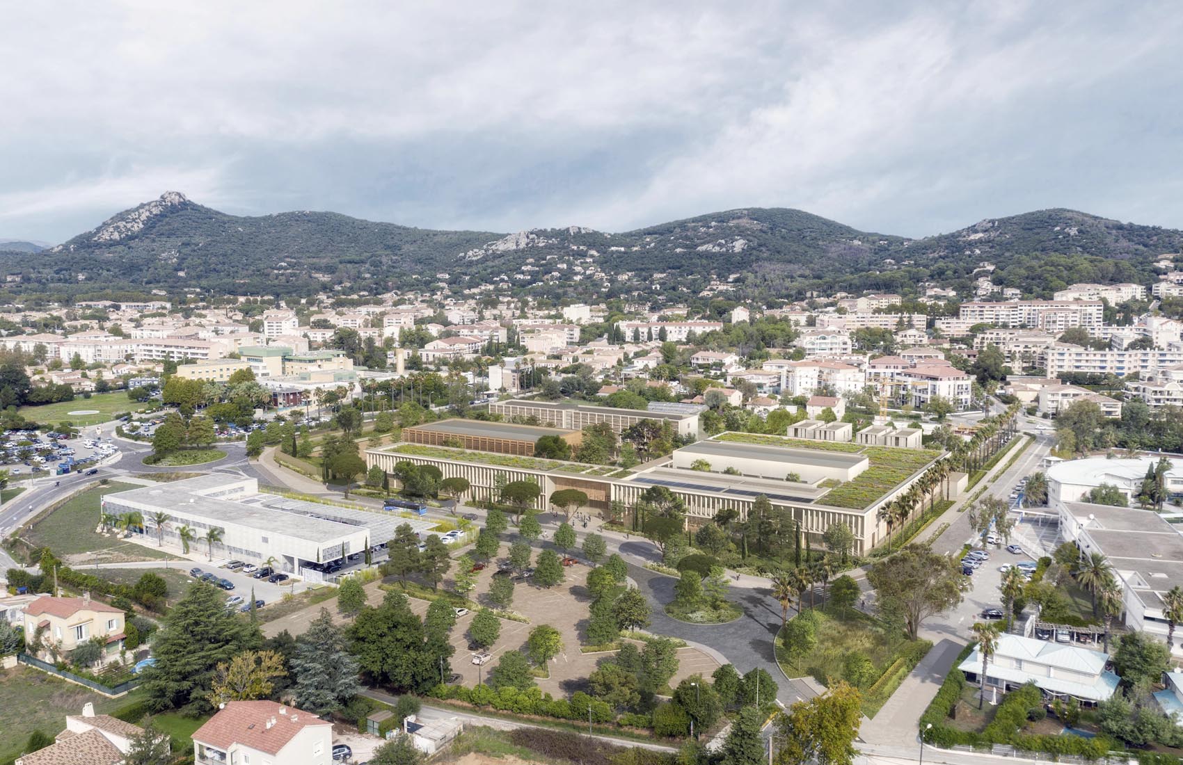 Reconstruction du lycée hôtelier de Hyères, avec salles de classes, cuisine pédagogique, administration, internat, gymnase, plateau sportif, logements de fonction…