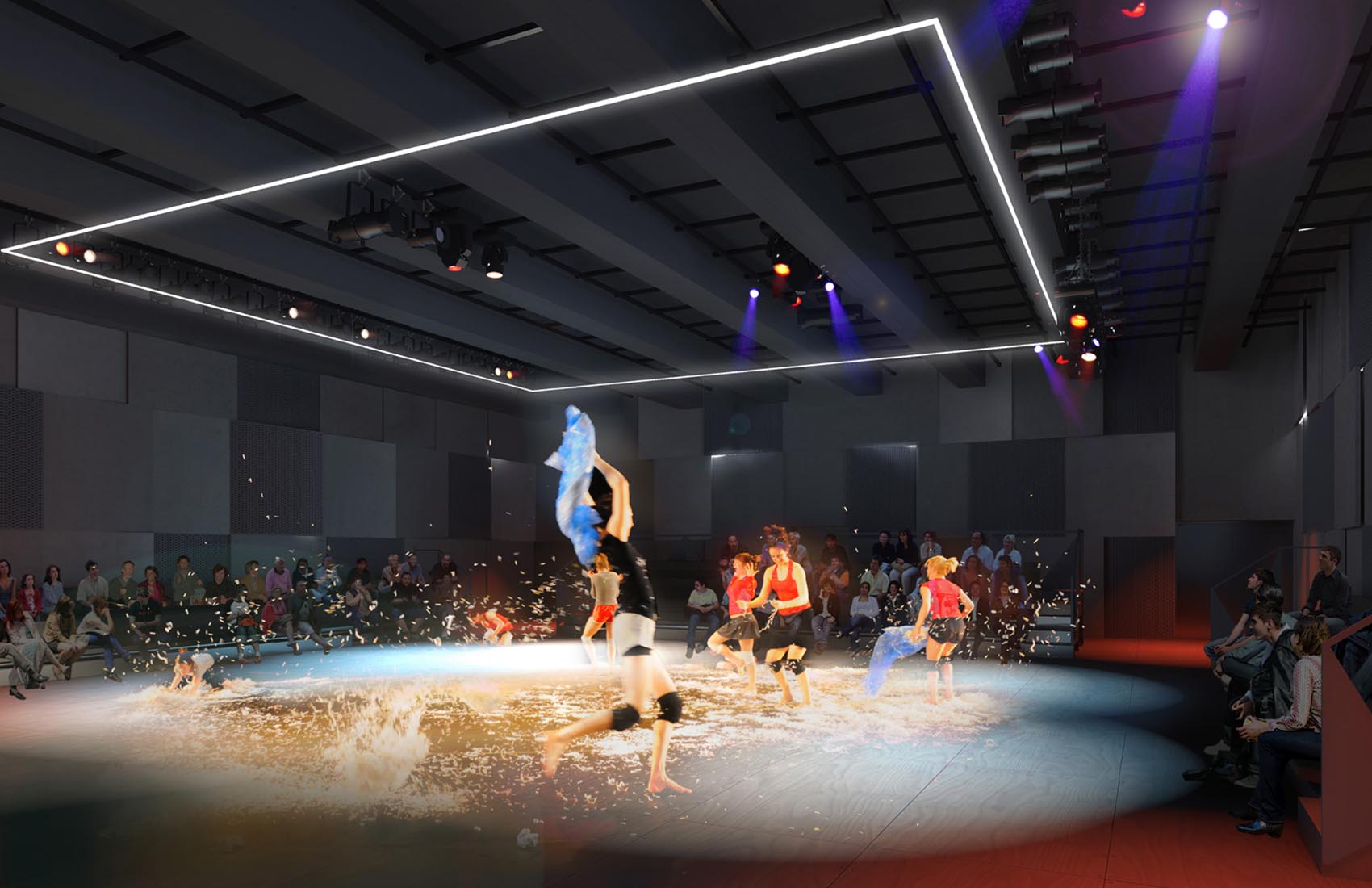 Relogement du théâtre de la Minoterie place de la méditerranée, à Marseille: grande salle (300 places) + petite salle (100 places).